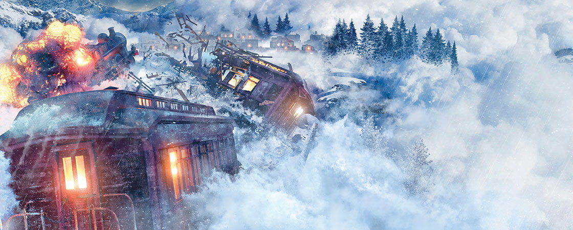 A few hours later, as Raymond and the others slept, massive hunks of snow broke loose from the steep mountainside that loomed above the stranded train. In the blink of an eye, the snow turned into a killer wave—a monstrous avalanche of snow, ice, boulders, and broken trees. It careened down the mountainside, obliterating everything in its path.